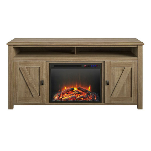 75 인치 거실 가구 소박한 나무 악센트 벽난로 TV 스탠드